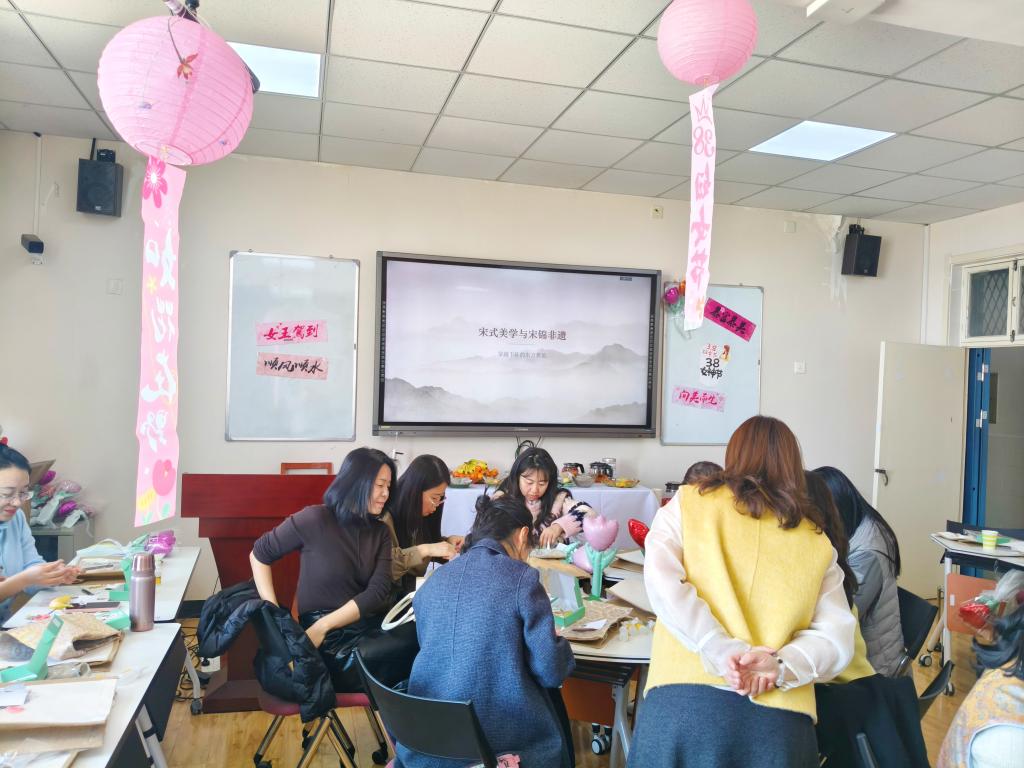 春意渐浓,锦色生香。为庆祝第116个“三八”国际劳动妇女节,弘扬中华优秀传统文化,丰富女教职工的精神文化生活,3月9日下午,校工会在教师发展中心多媒体活动室举办了“锦色如花 绽放巾帼”非遗宋锦手作体验活动。来自各学院、各部门的近60名女教职工齐聚一堂,在经纬交织的宋韵美学中,开启了一场指尖与心灵的对话。