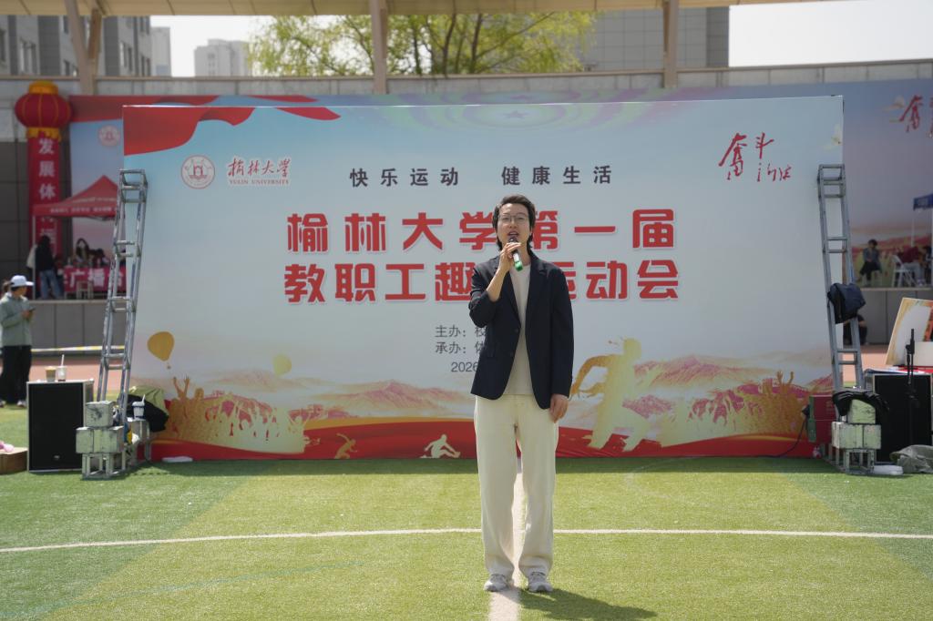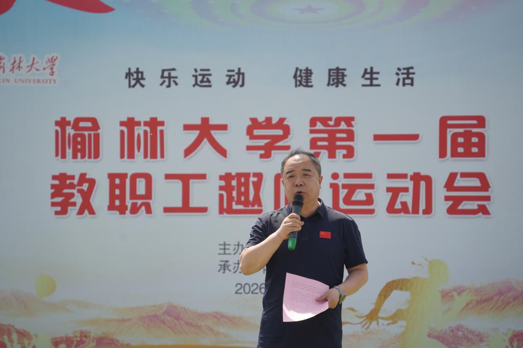 运动会开幕式上,副校长卜耀军代表学校党委和行政致辞。他向精心筹备活动的工作人员表示感谢,并向积极参与的全体教职工致以亲切问候。卜耀军指出,从“学院”迈向“大学”,是一代代榆苑人接续奋斗的重要成果。站在新的历史起点,他希望教职工们通过本次趣味运动会,能够传承优良传统、缓解工作压力、增进同事情谊,并将赛场激发出的热情与活力,转化为立德树人、攻坚克难的实际动力。最后,他祝愿老师们赛出风采、乐在其中,并号召大家以更强健的体魄、更饱满的热情、更昂扬的斗志,共同谱写榆林大学高质量发展的崭新篇章。